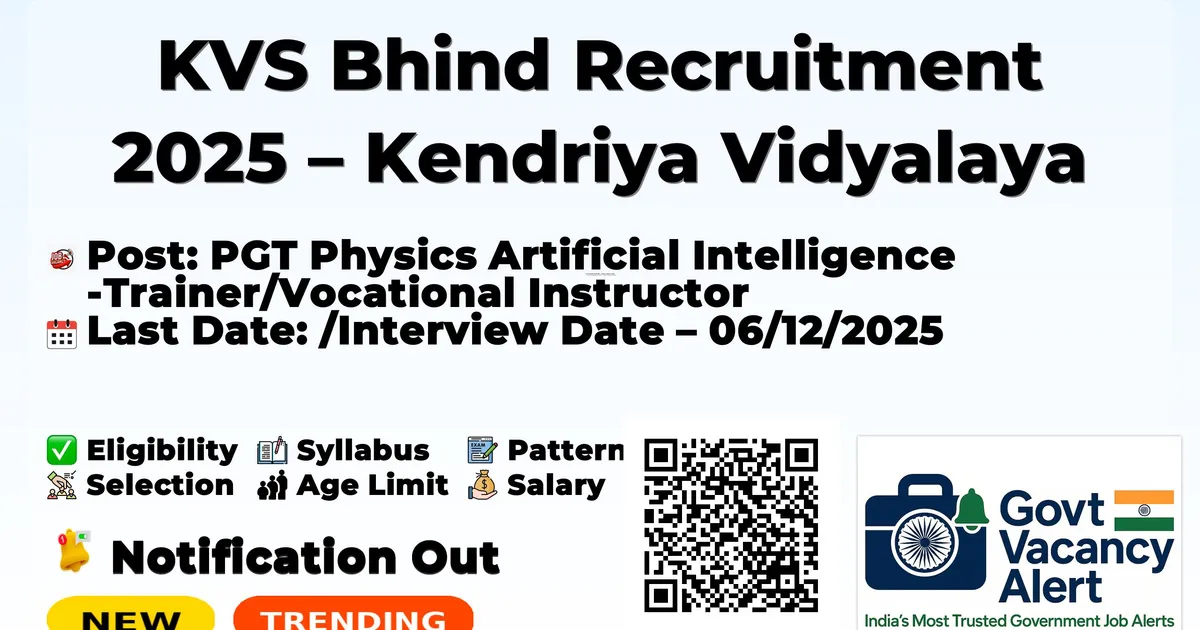 KVS Bhind Recruitment 2025 – Kendriya Vidyalaya Vacancy