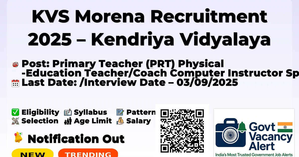KVS Morena Recruitment 2025 – Kendriya Vidyalaya Vacancy