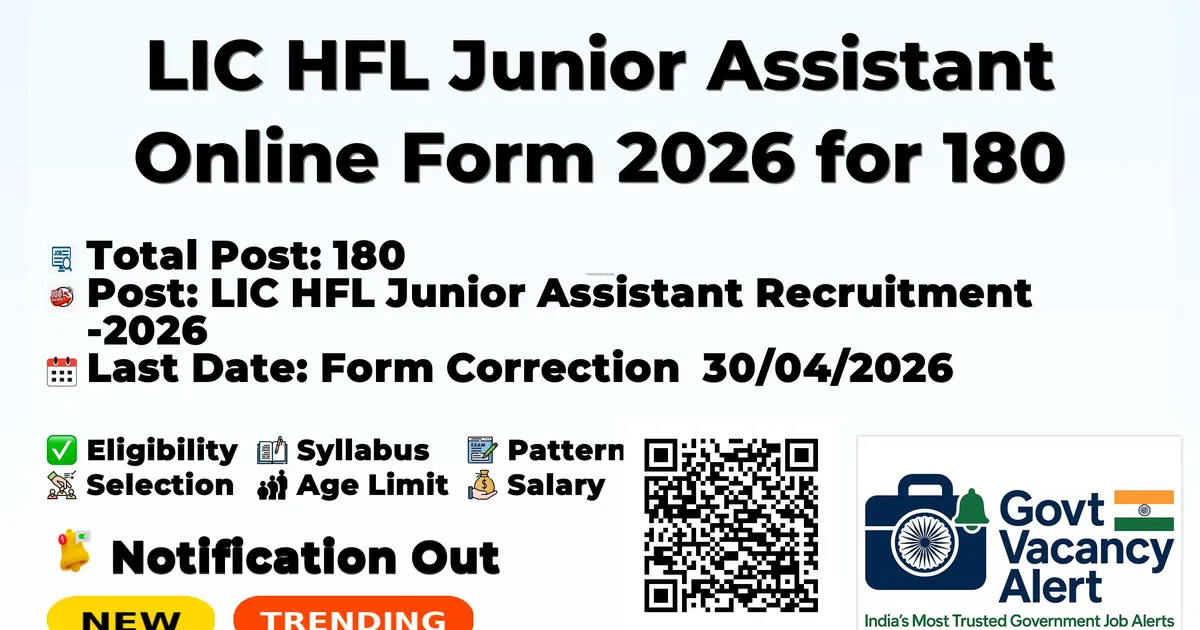 LIC HFL Junior Assistant Online Form 2026 for 180 Post — LIC HFL Junior Assistant Recruitment 2026