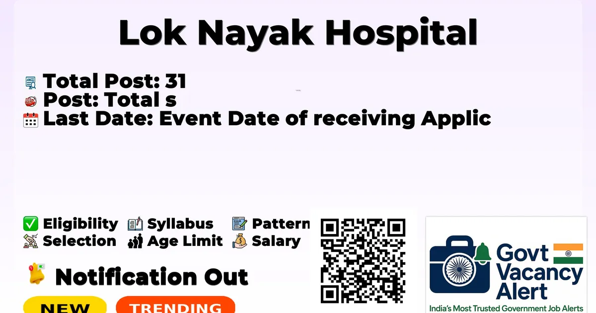 Lok Nayak Hospital has released an official notification for Walk-in Interview for 31 Junior Resident Posts. Eligible candidates can attend the Walk-in Interview on 03-03-2026 at the Lok Nayak Hospital office with original documents and self-attested copies.