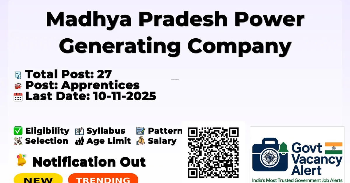 Madhya Pradesh Power Generating Company (MPPGCL) has released an official notification for the recruitment of 27 Apprentices Posts. Interested and eligible candidates can apply Offline through the official MPPGCL website. The last date to submit the application form is 10-11-2025. In this article, you’ll find the MPPGCL Apprentices Posts recruitment details, including eligibility criteria, age limit, salary structure, selection process, application steps, and direct links to the official notification and Offline application form.