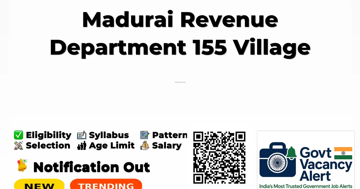 Madurai Revenue Department has released an official notification for the recruitment of 155 Village Assistant Posts. Interested and eligible candidates can apply Offline through the official Madurai Revenue Department website. The last date to submit the application form is 15-11-2025. In this article, you’ll find the Madurai Revenue Department Village Assistant Posts recruitment details, including eligibility criteria, age limit, salary structure, selection process, application steps, and direct links to the official notification and Offline application form.