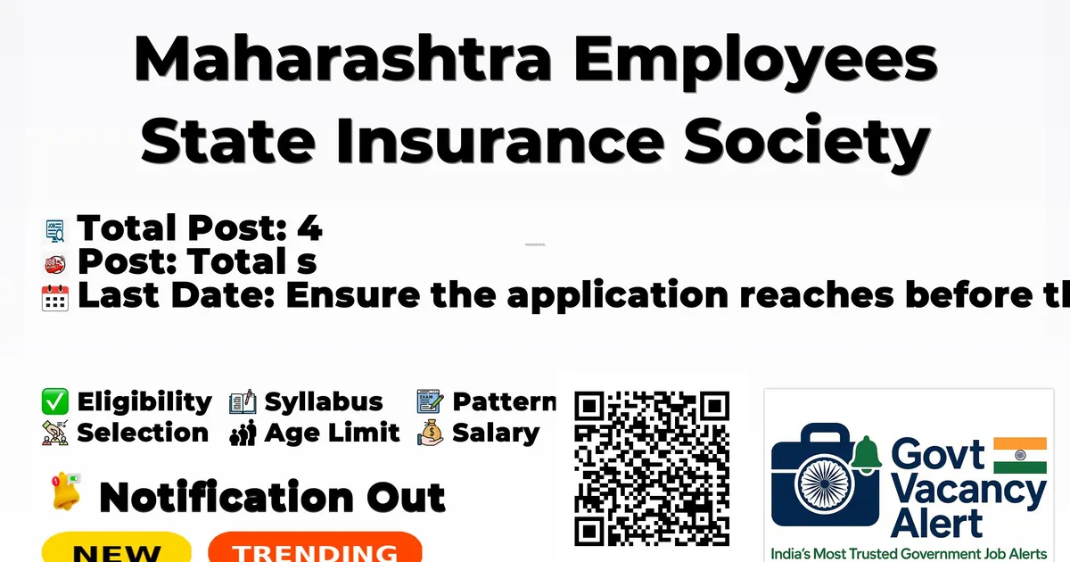 Maharashtra Employees State Insurance Society (Maharashtra ESIC) has released an official notification for the recruitment of 4 Medical Officer Posts. Interested and eligible candidates can apply Offline by sending the application form to the official address. The last date to submit the application is 16-03-2026. Advertisement Company Name Maharashtra Employees State Insurance Society Post Name Medical Officer No of Posts 4 Salary Rs. 60,000 Per Month Qualification M.B.B.S with PG degree from recognized university Age Limit Max: 67 years Last Date 16-03-2026 Apply Mode Offline Job Type Contract Candidates who are interested in applying for the Maharashtra ESIC Recruitment 2026 should first download and carefully read the official notification PDF. The notification contains complete details about vacancy distribution, eligibility criteria, age limit, stipend/salary, selection process, important dates, and application instructions. Reading the official document is important to ensure that you meet all requirements before submitting the application form. Download Maharashtra ESIC Job 2026 Notification PDF Post Name Total Posts Medical Specialist (Part Time) (MD/DNB Medicine) 1 Surgical Specialist (Part Time) 1 Obstetrics and Gynaecologist Specialist (Part Time) 1 Paediatrician (Part Time) 1 Total 4 Trending Govt Jobs IDBI Bank Junior Assistant Manager Online Form 2026 RRB 22000 Group D Online form 2026 Indian Army Agniveer Recruitment Rally Notification 2026 AIIMS NORCET 10 Online Form 2026 HPCL 731 Engineers, JEA and More Online Form 2026 M.B.B.S with PG degree from a recognized university. Category Fee General/OBC Nil SC/ST Nil Maximum Age Limit: 67 years as on 01-01-2026. Rs. 60,000/- Per Month (for 16 hr/week) Event Date Last Date for Application 16 March 2026 Interview Date 17 March 2026 Age as on 01 January 2026 Interview Candidates who wish to apply for Maharashtra ESIC Various Posts Recruitment 2026 through offline mode should follow the steps below. Read the official notification carefully before applying. Download the application form from the official website: . Fill the application form carefully with correct information. Attach self-attested copies of required documents such as photograph, signature, ID proof, and certificates. Check all details carefully before submission. Send the completed application form to the address mentioned in the notification through Speed Post / Registered Post or as instructed. Ensure the application reaches before the last date: 16-03-2026. Keep a photocopy of the submitted application form for future reference. Official Notification PDF Click here Official Website Click here