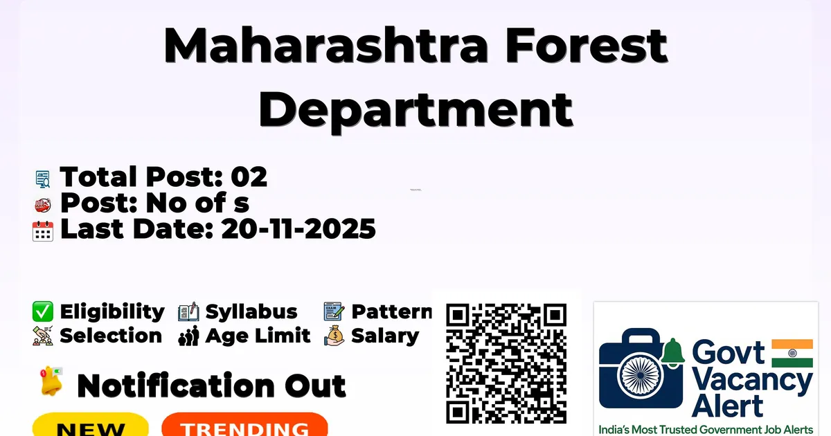 Company Name Maharashtra Forest Department Post Name Environmental Education Officer, Livelihooр Officer No of Posts 02 Salary Rs.30,000/- Qualification Any Post Graduate, MSW Age Limit 25 to 45 years Last Date for Apply 20-11-2025 Official Website mahaforest.gov.in