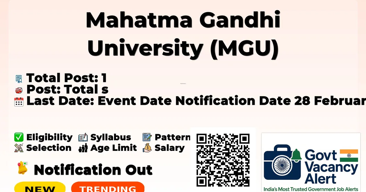 Mahatma Gandhi University (MGU) Recruitment 2026: Mahatma Gandhi University is conducting a Walk-in Interview for 1 Hardware Engineer posts. This recruitment provides an excellent opportunity for eligible candidates to attend the interview directly without any prior online application. The Walk-in Interview is scheduled on 05-03-2026. Candidates are strongly advised to report at the venue with all required documents well before the scheduled time. Below, you can find complete details of Hardware Engineer Walk-in Recruitment 2026, including vacancy breakdown, eligibility, age limit, salary, walk-in schedule, venue, and important links. Advertisement Company Name Mahatma Gandhi University (MGU) Post Name Hardware Engineer No of Posts 1 Advt No 117429/AD A4-3/2025/AD A 4 Salary Rs. 18,000/- Per Month Qualification Bachelor's degree in Computer Science/IT/Hardware & Networking/ related field of study or Three year Diploma in Computer Hardware/ Networking/related field or ITI in COMPUTER HARDWARE & NETWORK MAINTENANCE/Computer hardware assistant. Minimum 2 years of experience in Troubleshooting and Support of computer hardware, printers and Network components. Familiarity with a wide range of hardware devices and latest market trends. Certification/experience in any networking/ server maintenance course may be considered as an added advantage. Good Communication skills Age Limit Min: 18 years, Max: 36 years Walk-in Date 05 March 2026 Apply Mode Walk-in Job Type Contract Trending Govt Jobs RRB 22000 Group D Online form 2026 IAF Agniveer New Recruitment 2026 DSSSB 911 AE, JE & More Online Form 2026 MCL 677 Various Vacancies Online Form 2026 MMRDA 235 AE, JE and More Posts Online Form 2026 Candidates who are interested in applying for the MGU Recruitment 2026 should first download and carefully read the official notification PDF. The notification contains complete details about vacancy distribution, eligibility criteria, age limit, stipend/salary, selection process, important dates, and application instructions. Reading the official document is important to ensure that you meet all requirements before submitting the application form. Download MGU Hardware Engineer Job 2026 Notification PDF Post Name Total Posts Hardware Engineer 1 Total 1 Bachelor's degree in Computer Science/IT/Hardware & Networking/ related field of study or Three year Diploma in Computer Hardware/ Networking/related field or ITI in COMPUTER HARDWARE & NETWORK MAINTENANCE/Computer hardware assistant. Minimum 2 years of experience in Troubleshooting and Support of computer hardware, printers and Network components. Familiarity with a wide range of hardware devices and latest market trends. Certification/experience in any networking/ server maintenance course may be considered as an added advantage. Good Communication skills Minimum Age: 18 years Maximum Age: 36 years Relaxation to SC/ST/OBC Candidates as per rules. A relaxation of 1 year in age for every 1 year of service up to a maximum of 5 years will be given to candidates for experience in Universities. Rs. 18,000/- Per Month Event Date Notification Date 28 February 2026 Walk-in Interview Date 05 March 2026 Reporting Time for Certificate Verification 05 March 2026 Last Date to Apply 05 March 2026 Walk-in Interview Read the official notification carefully before attending the interview. Candidates must report at the venue as per the reporting time mentioned in the notification. Carry all original documents along with one set of self-attested photocopies such as ID proof, educational certificates, experience certificates (if required), and category certificate (if applicable). Bring the duly filled application form if required in the notification. Verify eligibility criteria before attending the interview. Candidates are advised to reach the venue well in advance to complete registration formalities. Keep extra passport-size photographs for submission if required. Link Description Link Official Notification PDF Click here Official Website Click here