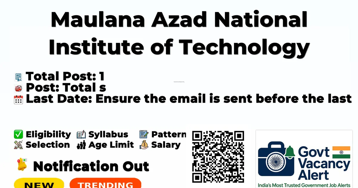 Maulana Azad National Institute of Technology Bhopal (MANIT Bhopal) Recruitment 2026: Maulana Azad National Institute of Technology Bhopal has released the official notification for 1 Junior Research Fellow (JRF) posts, inviting applications from eligible candidates. This recruitment provides an excellent opportunity for candidates seeking research jobs.