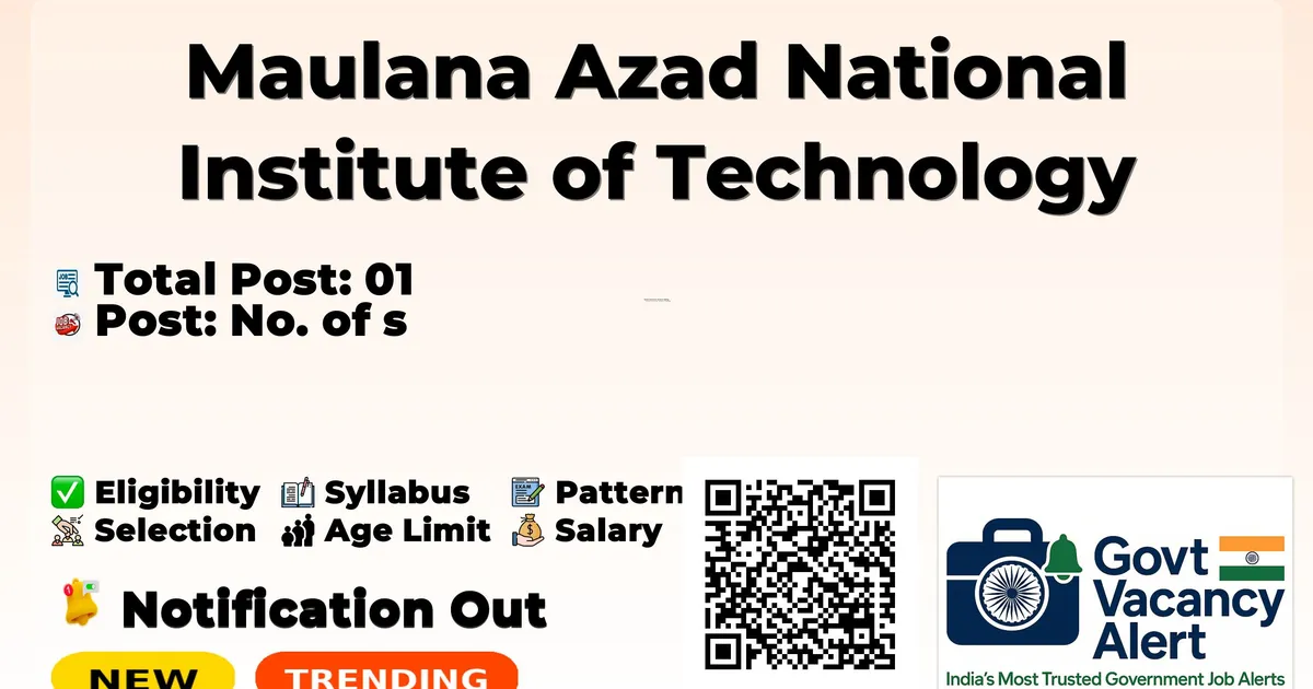 Company Name Maulana Azad National Institute of Technology Post Name Junior Research Fellow/ Project Fellow No of Posts 01 Salary Rs 37,000/- Qualification M.E./M.Tech/M.Sc. Age Limit 30 years Advt No 2026JANFMTS00005504 Official Website www.manit.ac.in