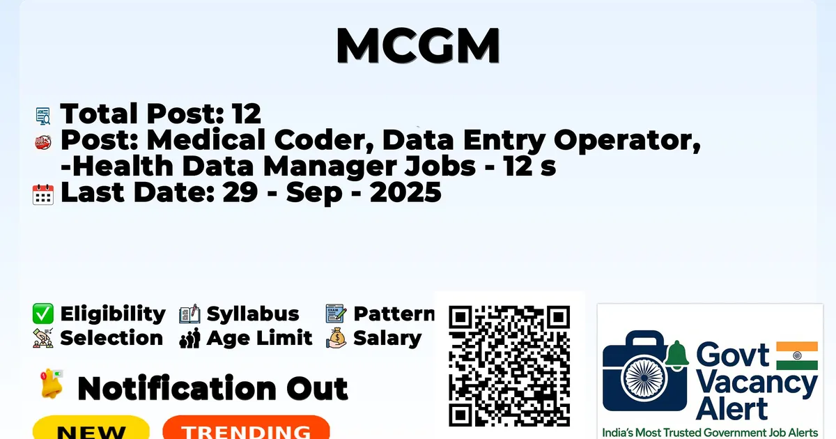 The Brihan Mumbai Municipal Corporation (BMC) has officially released the notification to fill the vacancies of 12 Medical Coders, Data Entry Operators, and Health Data Managers Posts. Interested and eligible candidates can use this opportunity to apply for these posts before the last date of application. Candidates who have completed their B.Sc., 10th pass, B.E./B. Tech and M. Sc can apply for the BMC Recruitment 2025. The interested applicants can apply in online mode. Here we have mentioned the education details, age limit, selection process, application fee, salary, and how to apply for these posts before the deadline. The application dates have already begun.
