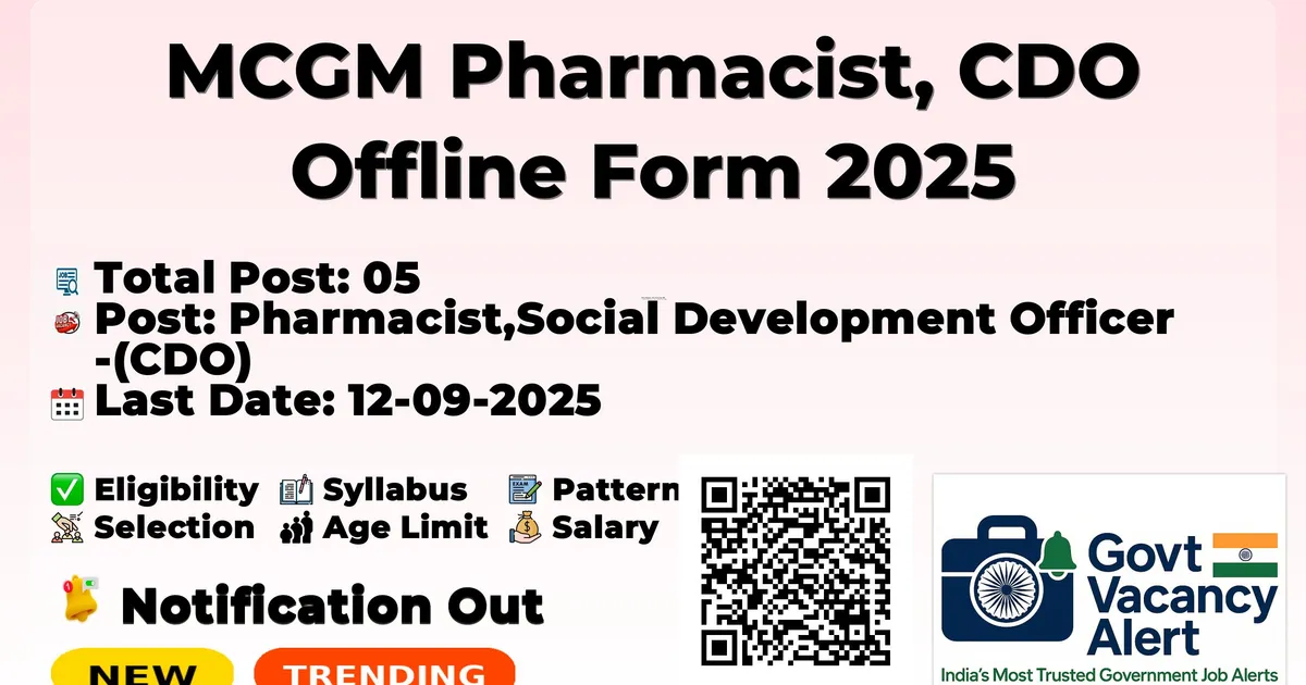 MCGM Pharmacist, CDO Offline Form 2025 — Pharmacist,Social Development Officer (CDO)