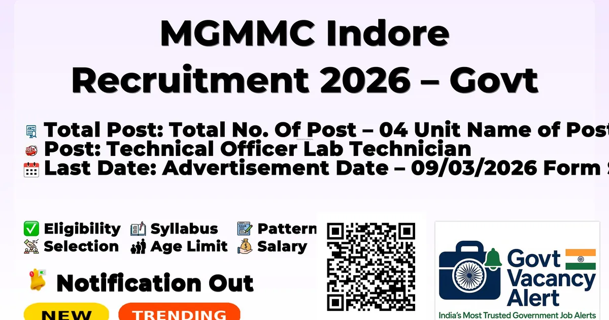 Dear friends, (MGMMC) Mahatma Gandhi Memorial Medical College, Indore has released Indore MGM Medical College Recruitment 2026. All the candidates who like government job can see the PDF of Indore MGM Medical College Notification 2026. Eligible and interested candidates can apply for this job before the last date. Candidates read this article till the end to get the dates, qualifications, age limit, fees, application and other information of Indore MGM Medical College Recruitment Form 2026.