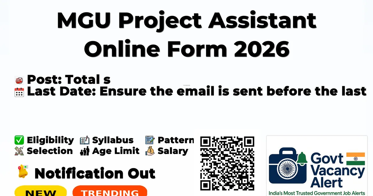 Mahatma Gandhi University (MGU) has released an official notification for the recruitment of 01 Project Assistant Posts. Interested and eligible candidates can apply Online through the official MGU website. The last date to submit the application form is 20/02/2026. In this article, you’ll find the MGU Project Assistant Posts recruitment details, including eligibility criteria, age limit, salary structure, selection process, application steps, and direct links to the official notification and Online application form.