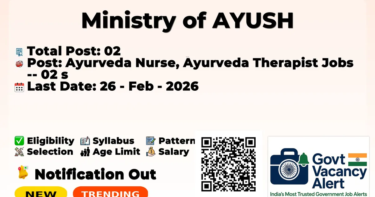Ministry of AYUSH — Ayurveda Nurse, Ayurveda Therapist Jobs - 02 Posts