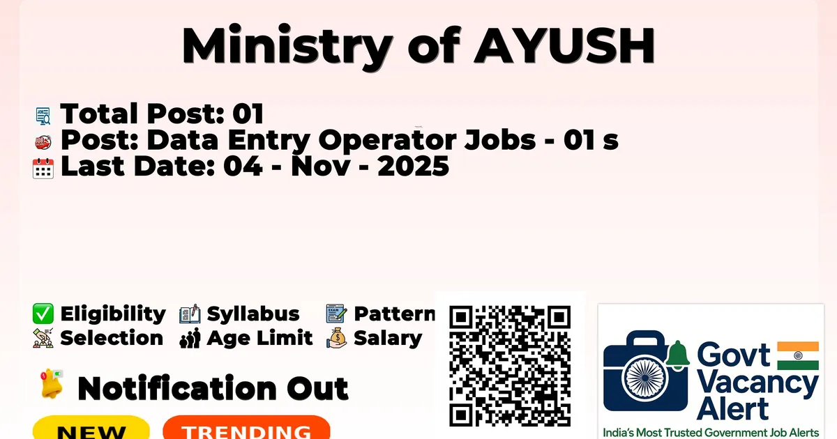 Ministry of AYUSH — Data Entry Operator Jobs - 01 Posts