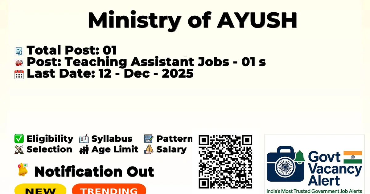 Ministry of AYUSH — Teaching Assistant Jobs - 01 Posts