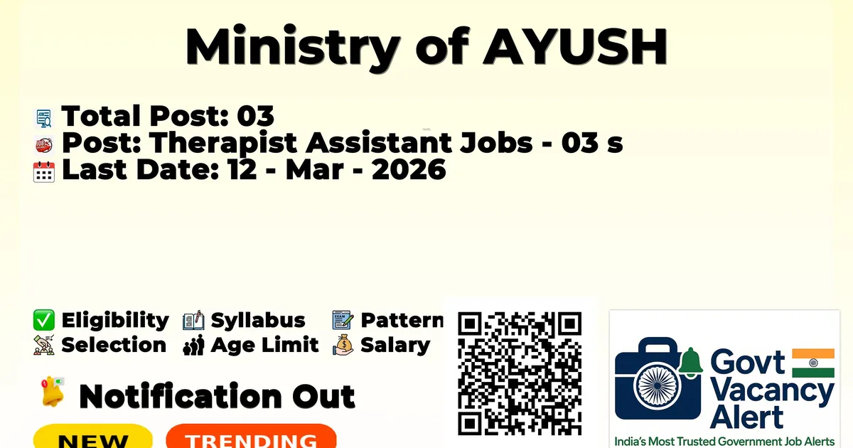 Ministry of AYUSH — Therapist Assistant Jobs - 03 Posts