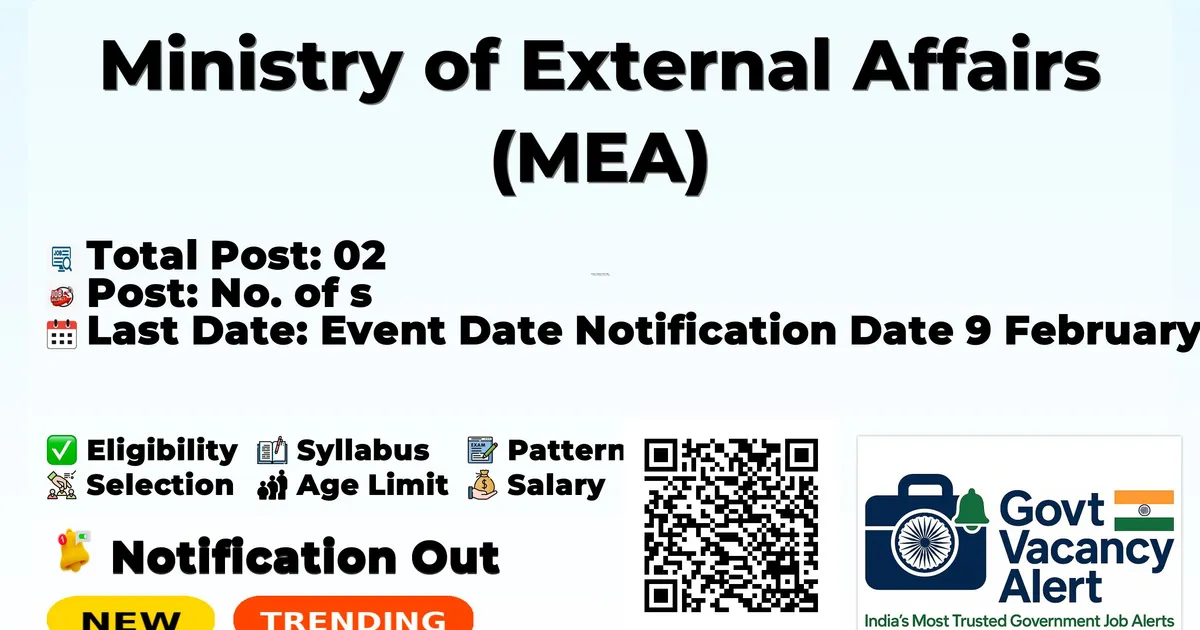 Ministry of External Affairs (MEA) has released an official notification for the recruitment of 02 Consultant Posts. Interested and eligible candidates can apply Offline through the official MEA website. The last date to submit the application form is 03-03-2026. In this article, you’ll find the MEA Consultant Posts recruitment details, including eligibility criteria, age limit, salary structure, selection process, application steps, and direct links to the official notification and Offline application form.