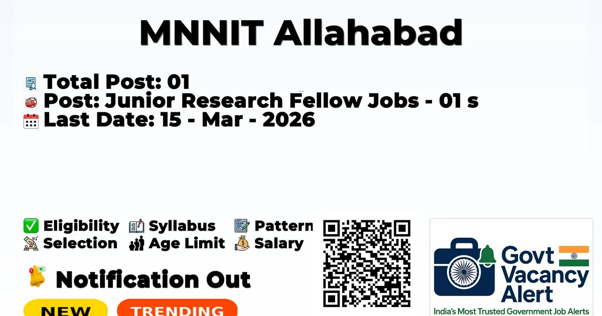 Motilal Nehru National Institute of Technology Allahabad (MNNIT Allahabad) Recruitment 2026 for the post of Junior Research Fellow. Candidates with B.E./B.Tech./M.E./M. Tech can use this chance and apply for the MNNIT Allahabad Recruitment 2026. Here, we provide more details on the age limit, selection process, salary structure, educational qualifications, application fee, and how to apply for these posts. Interested and eligible candidates can apply on or before the last date of application.