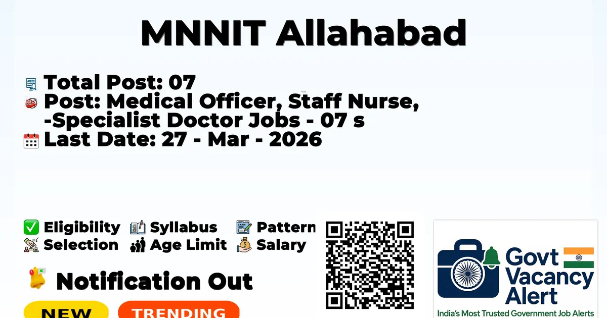 Motilal Nehru National Institute of Technology, Allahabad (MNNIT Allahabad) has released an official notification for the recruitment of 07 Medical Officers, Staff Nurses, and Specialist Doctors. Those candidates who have qualified in MBBS, MD/ MS, DNB, and B.Sc Nursing can grab this chance and apply for the MNNIT Allahabad Recruitment 2026. Here we include the age limit, selection process, salary structure, education details, application fee, and how to apply for these posts.