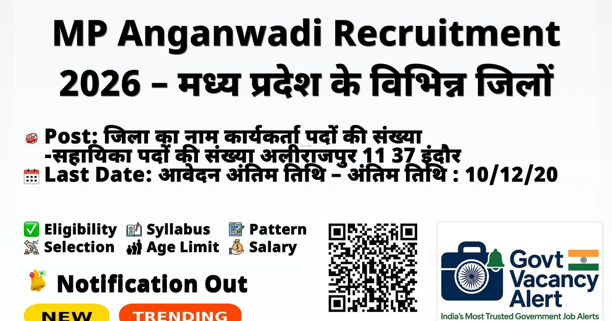 MP Anganwadi Recruitment 2026 – मध्य प्रदेश के विभिन्न जिलों में 4767 पदों पर आंगनवाड़ी भर्ती