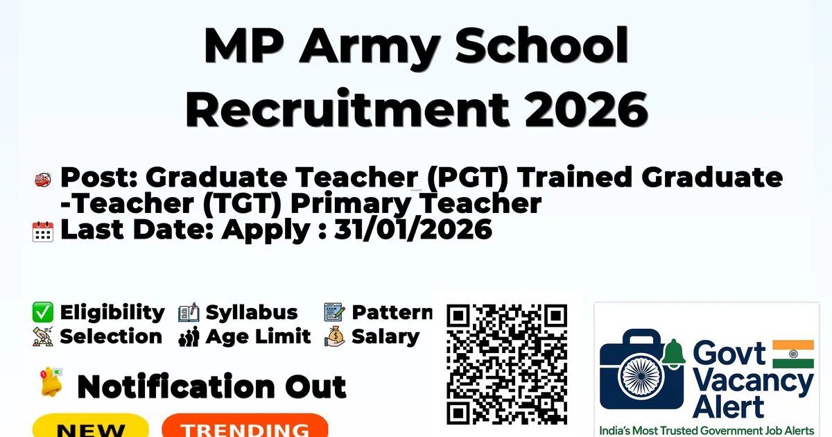 Dear friends, Army Public School NO.1 , GRC Jabalpur has released MP Army School Recruitment 2026. All the candidates who like government job can see the PDF of MP Army School Notification 2026. Eligible and interested candidates can apply for this job before the last date. Candidates read this article till the end to get the dates, qualifications, age limit, fees, application and other information of MP Army School Recruitment Form 2026.