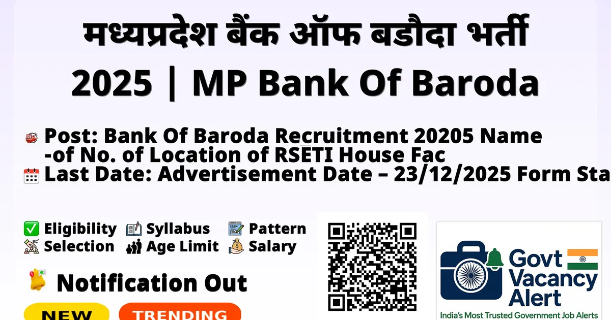 मध्‍यप्रदेश बैंक ऑफ बडौदा भर्ती 2025 | MP Bank Of Baroda Recruitment 2025
