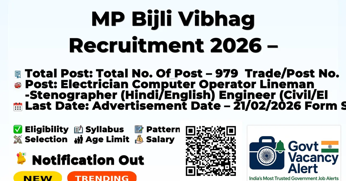 MP Bijli Vibhag Recruitment 2026 – Vacancy For 979 Post