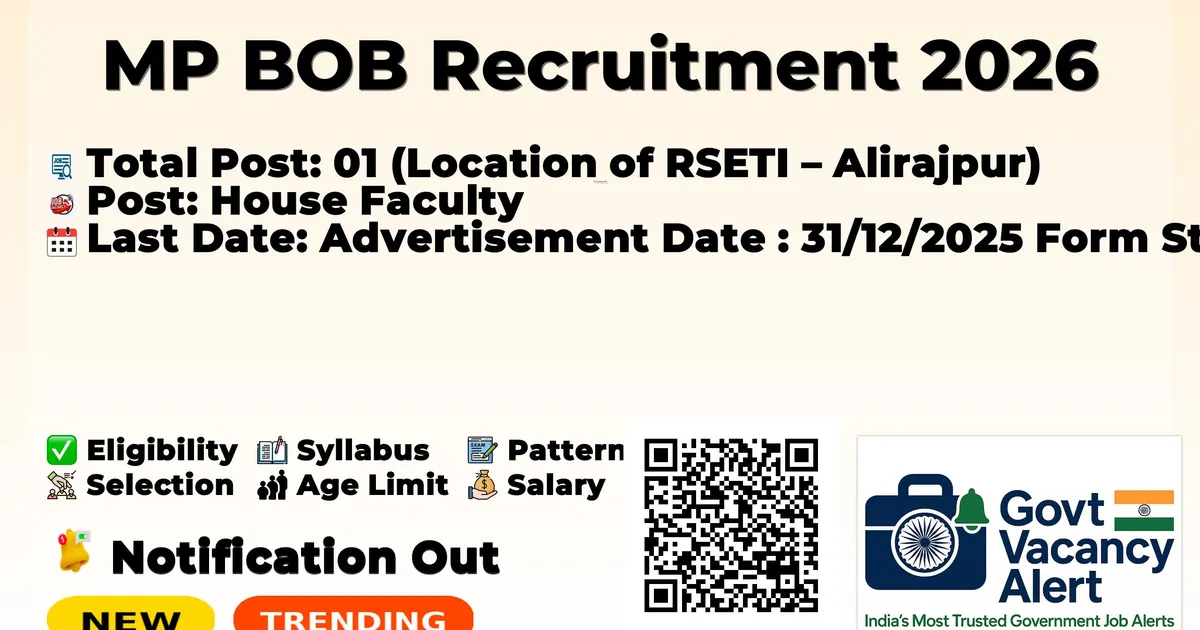 Last Date: Advertisement Date : 31/12/2025 Form Start Date : 31/12/2025 Form Last Date : 19/01/2026 Interview Date : Notified Soon.