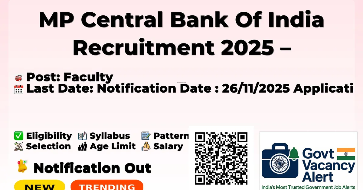 MP Central Bank Of India Recruitment 2025 – Various Posts