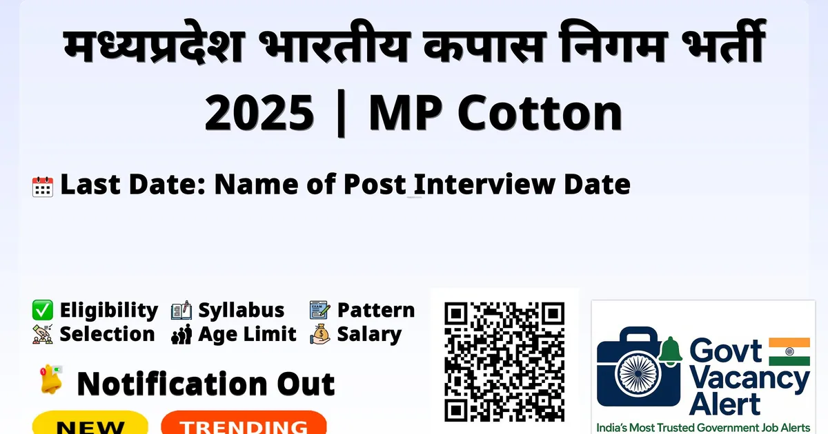 मध्यप्रदेश भारतीय कपास निगम भर्ती 2025 | MP Cotton Corporation of India Recruitment 2025