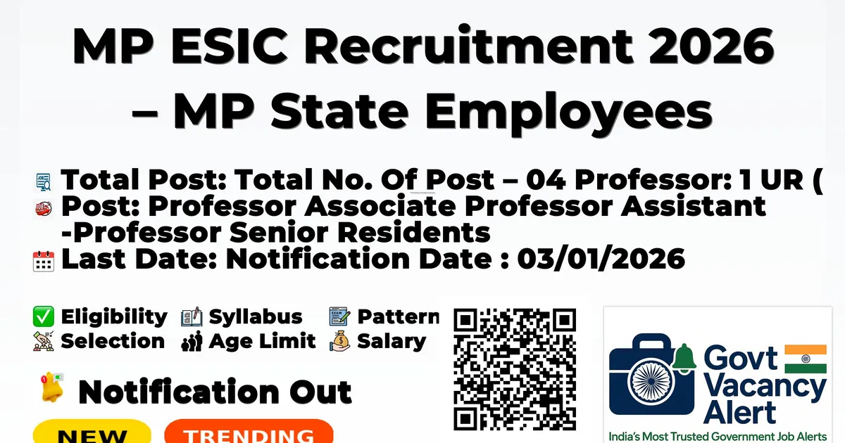MP ESIC Recruitment 2026 – MP State Employees State Insurance Corporation