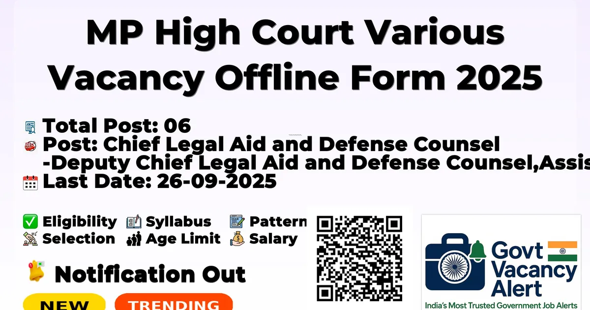 MP High Court Various Vacancy Offline Form 2025 — Chief Legal Aid and Defense Counsel,Deputy Chief Legal Aid and Defense Counsel,Assistant Legal Aid and Defense Counsel