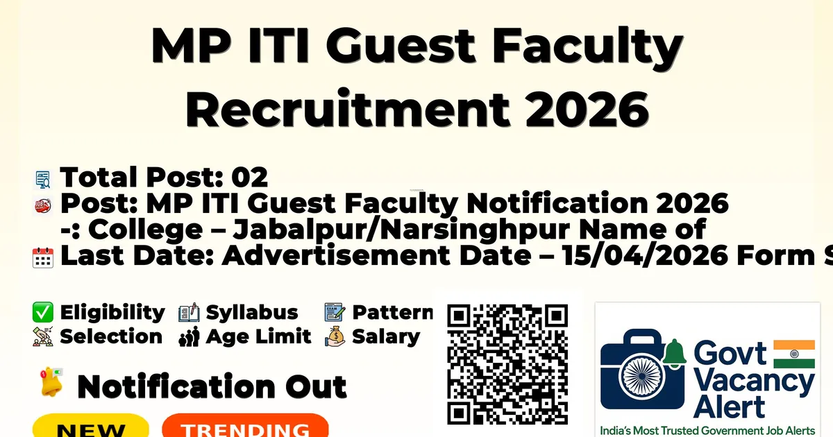 | MP ITI Guest Faculty Notification 2026 : College – Jabalpur/Narsinghpur | ||