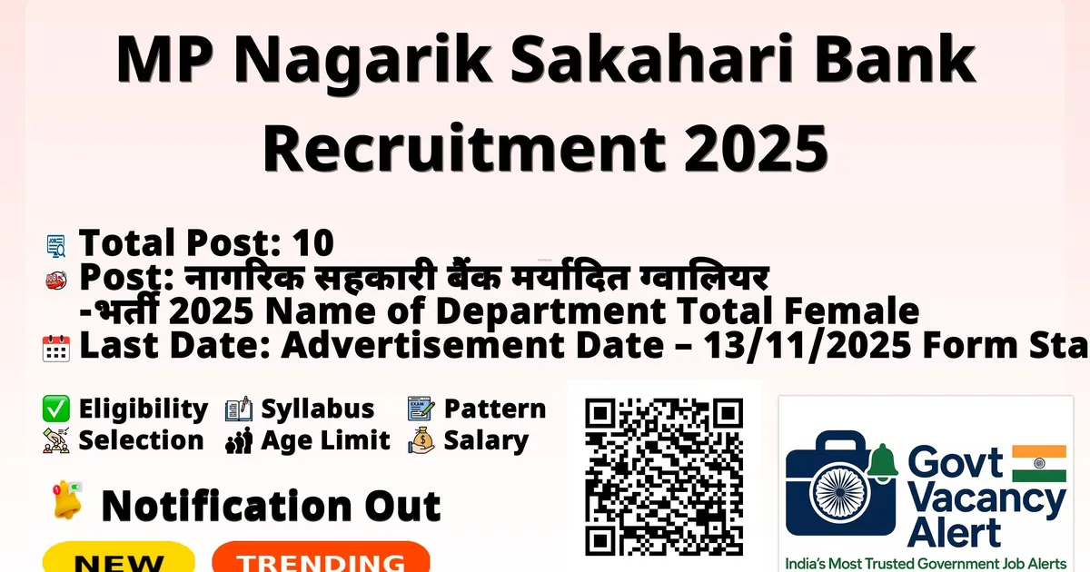 | नागरिक सहकारी बैंक मर्यादित ग्वालियर भर्ती 2025 | |||