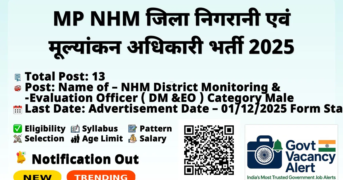 MP NHM जिला निगरानी एवं मूल्‍यांकन अधिकारी भर्ती 2025