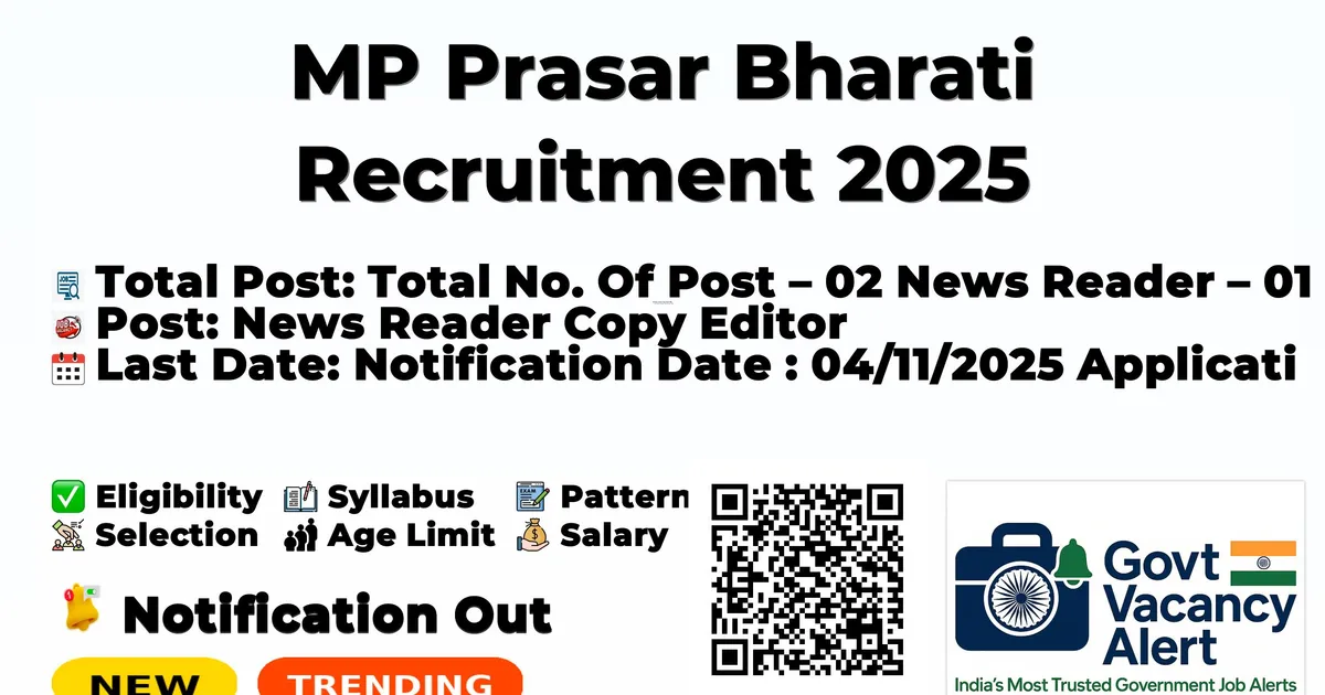 Minimum Age: Age Limit As On 01/11/2025. News Reader: Minimum age is 21 years, and the maximum age is 40 years. Copy Editor: Minimum age is 21 years, and the maximum age is 50 years.