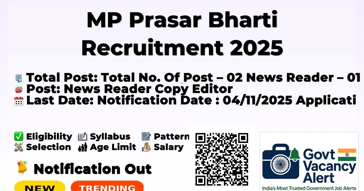 Minimum Age: Age Limit As On 01/11/2025. News Reader: Minimum age is 21 years, and the maximum age is 40 years. Copy Editor: Minimum age is 21 years, and the maximum age is 50 years.