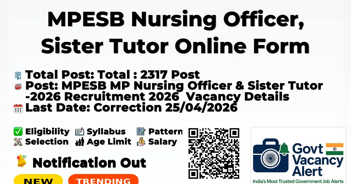 MPESB MP Nursing Officer & Sister Tutor 2026 Post Recruitment 2026 Vacancy Details