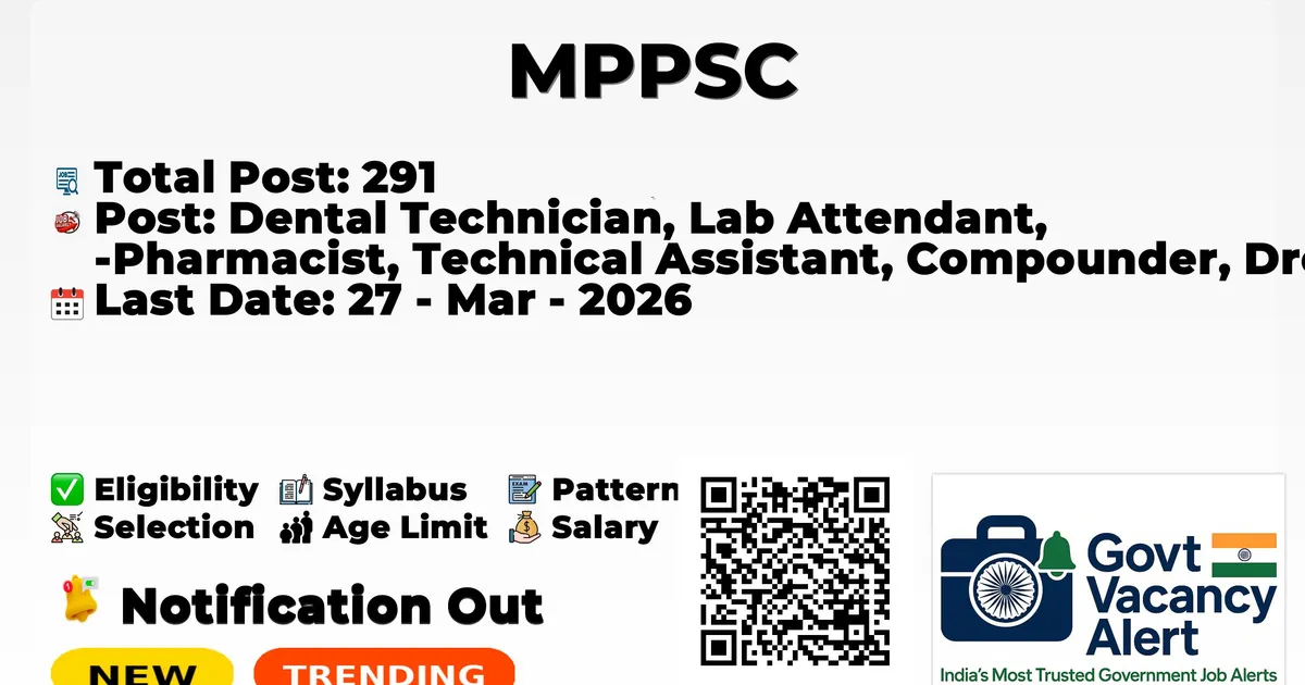 MPPSC — Dental Technician, Lab Attendant, Pharmacist, Technical Assistant, Compounder, Dresser Jobs - 291 Posts