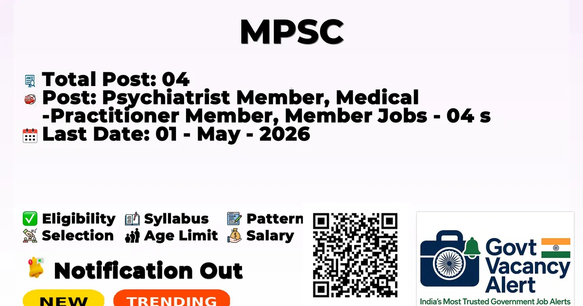 MPSC — Psychiatrist Member, Medical Practitioner Member, Member Jobs - 04 Posts