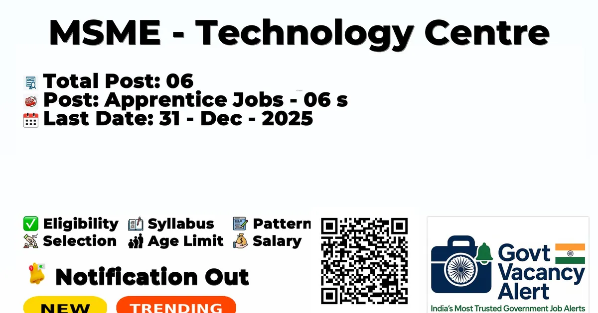 MSME - Technology Centre — Apprentice Jobs - 06 Posts