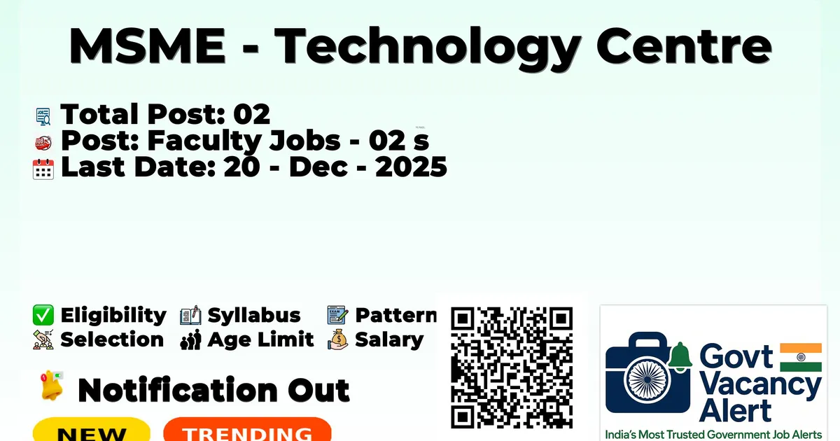 MSME - Technology Centre — Faculty Jobs - 02 Posts