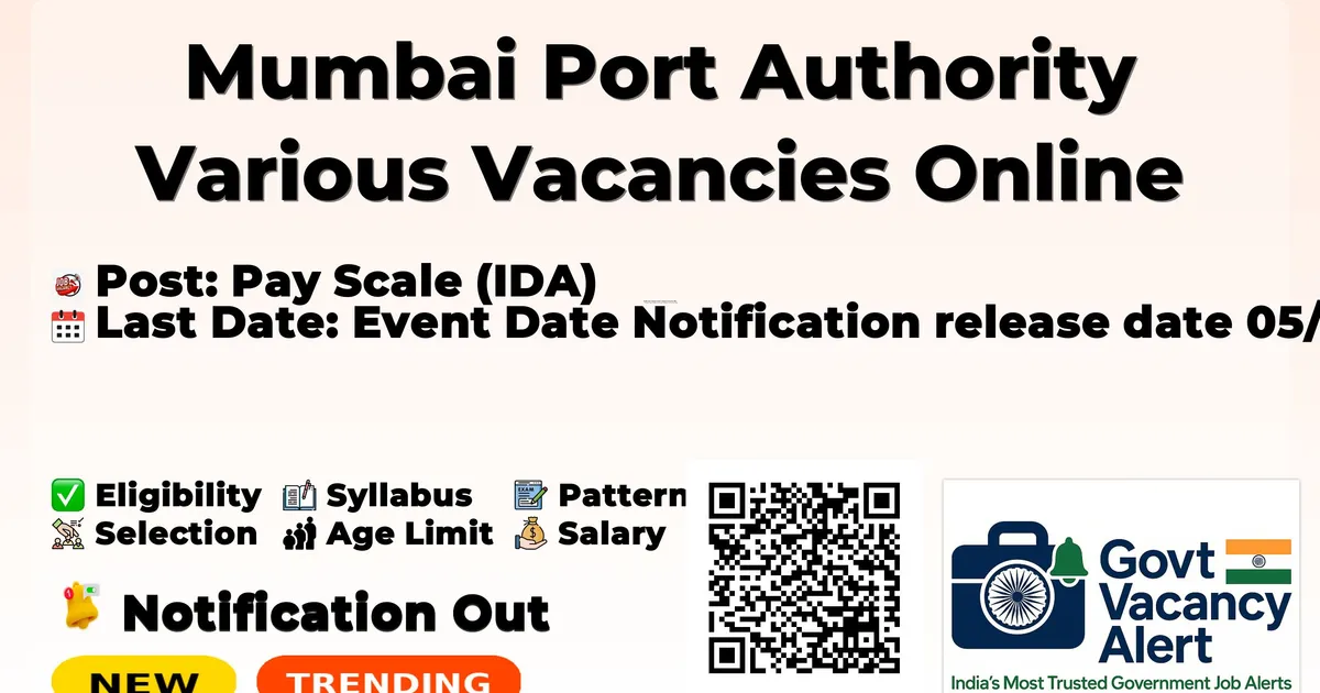 The above information on Mumbai Port Authority Recruitment 2026 is compiled from the official Advertisement No. DR-15 dated 05/03/2026 available on the Mumbai Port Authority website. Candidates should treat the original notification, corrigendum and instructions on www.mumbaiport.gov.in as final and must verify all details, eligibility conditions, dates and updates from the official website before applying or taking any recruitment-related decision.