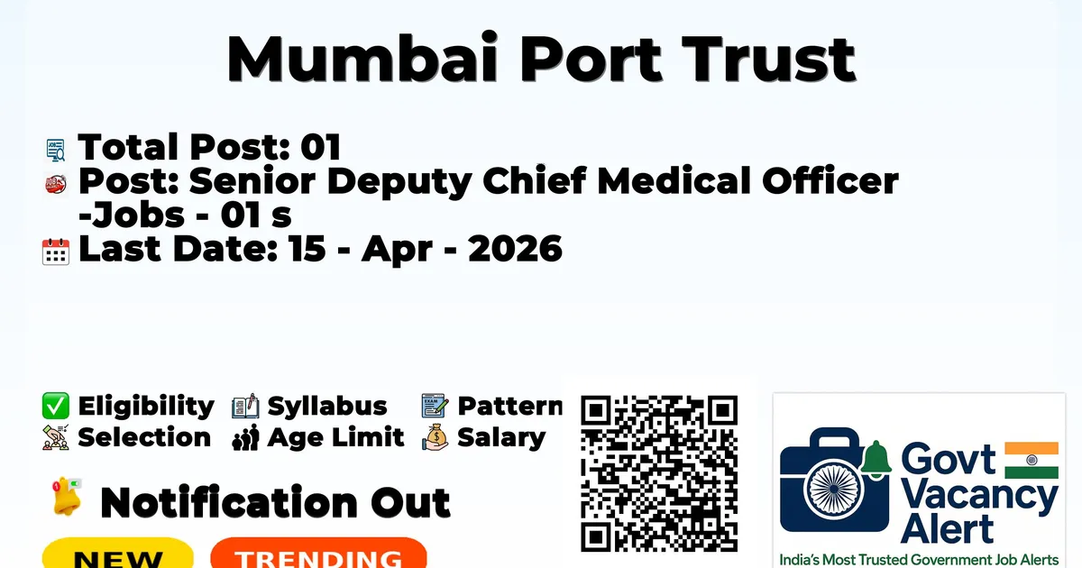 Mumbai Port Trust — Senior Deputy Chief Medical Officer Jobs - 01 Posts