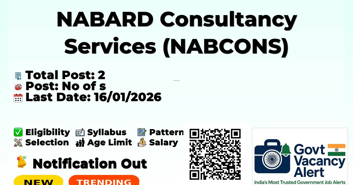 NABARD Consultancy Services (NABCONS) has released an official notification for the recruitment of 02 Associate Vice President Posts. Interested and eligible candidates can apply Online through the official NABCONS website. The last date to submit the application form is 16-01-2026. In this article, you’ll find the NABCONS Associate Vice President Posts recruitment details, including eligibility criteria, age limit, salary structure, selection process, application steps, and direct links to the official notification and Online application form. Trending Govt Jobs Income Tax Steno, MTS Online Form 2026 RRB 22000 Group D Online form 2026 SBI 1146 SCO Online Form 2025 IOCL 501 Apprentice Online Form 2026 Indian Army 350 SSC Tech Men Online Form 2026 Advertisement Company Name NABARD Consultancy Services (NABCONS) Post Name Associate Vice President No of Posts 2 Advt No NABCONS/CO-HR/19/CCS/2025-26 Qualification Graduate with minimum 60% and Post Graduation with minimum 55% Age Limit 45 years Start Date for Apply 07/01/2026 Last Date for Apply 16/01/2026 Official Website www.nabcons.com Post Name No of Posts Associate Vice President- Agri, Livestock, and Fisheries Solutions 1 Associate Vice President-Human Resource 1 Qualifications: Regular Graduate with minimum 60% and regular Post-Graduation with minimum 55% or equivalent grade points in CGPA from reputed institution. Essential qualifications: For ALFS: Specialisation in atleast any one of the technical fields such as finance, agri-business, dairy, fishery, livestock, food processing, rural development, food technology, agri & allied sector, civil engineering, business administration, etc. For HR: Regular MBA/PGDM or equivalent in HR with major subject as HR/Industrial relations from reputed management institution with minimum 55% or equivalent grade points. Desirable: Candidates with additional knowledge of Data Analysis tools/software is desirable. Candidates with knowledge of analytical tools/software is desirable. Experience: Minimum 9 years of experience with at least 5 years’ experience in a reputed consultancy organisation operating in the area of Agriculture and Rural Development. Consolidated monthly remuneration as per NABCONS Policy and Industry Standards. Maximum Age: Preferably below 45 years Event Date Notification Date 07/01/2026 Start Date for Online Application 07/01/2026 Last Date for Online Application 16/01/2026 The candidates shortlisted as per the eligibility criteria may be subjected to a qualifying written test, if required & followed by Personal Interview. Before applying, candidates should read all the instructions carefully and ensure that they fulfil all the eligibility criteria for the post. NABCONS would admit candidates on the basis of the information furnished in the ON-LINE application and shall verify their eligibility at the stage of interview/ joining. Candidates are requested to apply only ON-ONLINE through NABCONS website (www.nabcons.com). No other mode of submission of application will be accepted. Only Shortlisted candidates will be called for the interview. Location and the process of Interview will be indicated in the call letter. The applicant may submit the declaration in the online form with respect to the educational qualification and experience. Self-attested copies of educational qualifications and experience certificates to be compulsorily submitted at the time of the interview. Place of posting of the candidate appointed for the given posts will be as per clause (1) of the advertisement. Candidates, however, is liable to be posted at any other Office or Unit of NABCONS in India or abroad ln future, depending on the Office requirements. List of selected and waitlisted candidates for the posts will be uploaded in NABCONS website (www.nabcons.com). No correspondence will be entertained from any ineligible and non-selected candidate in all matter regarding eligibility, the selection process, documents to be produced for the selection process, assessment, prescribing minimum qualifying standards, number of vacancies, communication of result, etc. The final appointment will be based on the decision of selection committee constituted for the purpose. Company reserves the right to increase/ decrease the number of posts or not to fill up any of the posts. The appointment shall be subject to being found medically fit, for which purpose the candidate shall be required to undergo the protocol of medical tests upon reporting at place of posting. Merely satisfying the eligibly criteria does not entitle candidate to be called for the interview. NABCONS reserves the right to call only the requisite number of candidates for the interview depending on number of responses, after preliminary screening / shortlisting with reference to candidate's qualification, suitability, experience, etc. NABCONS reserves the right to cancel the recruitment for the captioned post without assigning any reason at any stage. Interested candidates may apply online in the prescribed format within 10 days by clicking on the following links and filling the details therein from 7th Jan 2026 till 16th Jan 2026 midnight. Position: Associate Vice President- Agri, Livestock, and Fisheries Solutions - Application for the post of Associate Vice President- ALFS in New Delhi (01 Post) – Fill out form. Position: Associate Vice President-Human Resource - Application for the post of Associate Vice President HR at New Delhi (1 Post) – Fill out form. In case the above link does not work, you may also copy and paste the link in your web browser and fill the details therein. Applications submitted successfully will only be considered. Apply Online: Link 1 | Link 2 Official Notification PDF: Click here Official Website: Click here Join Arattai Channel: Click Here Join Telegram Channel: Click Here Join WhatsApp Channel: Click Here Sarkari Result: Click Here Download Mobile App: Click Here