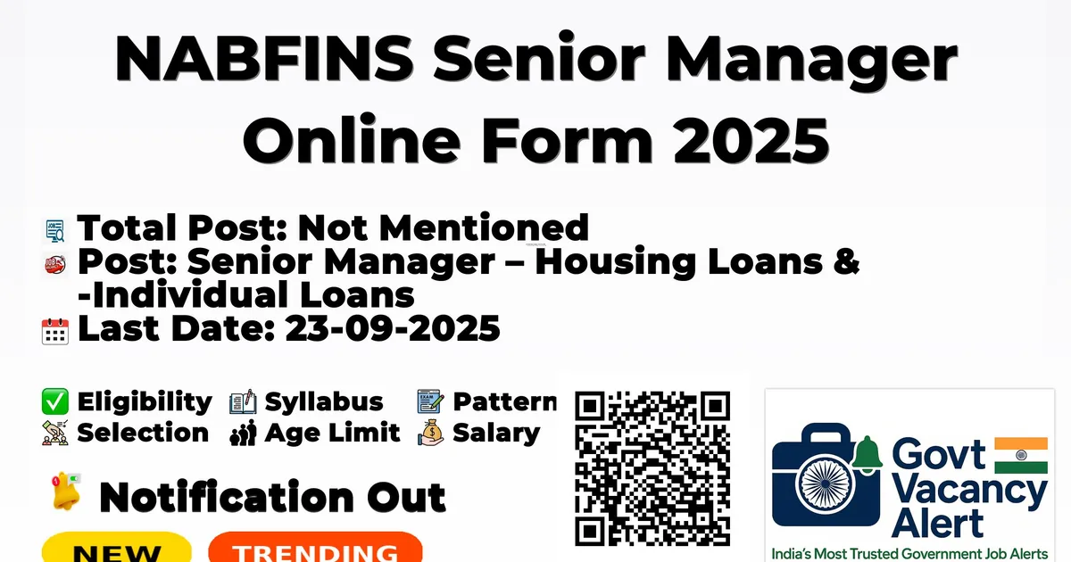 The NABFINS Senior Manager Recruitment 2025 Notification PDF has been released on 13-09-2025 at nabfins.org. Check the complete job details, vacancy, age limit, application fee, selection process and how to apply from the article. You can Check all Latest Sarkari Result Updates of All Central Government Jobs and State Government Jobs.