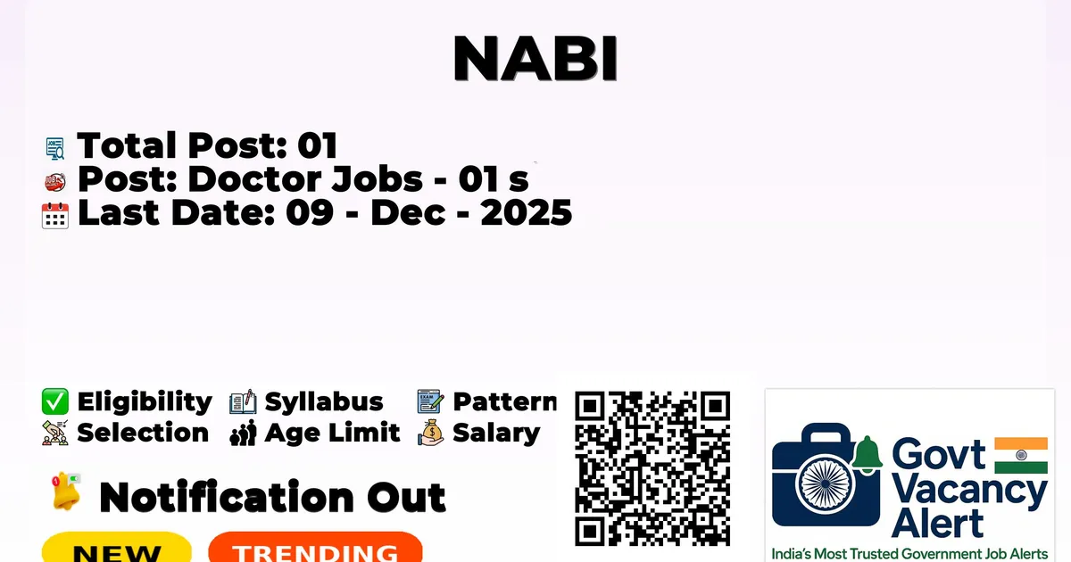 The National Agri-Food Biotechnology Institute (NABI) has officially released the notification to fill the vacancies of 01 Doctor Posts. Interested and eligibile candidates can use this opportunity to apply for these posts before the last date of application. Candidates who have completed their MBBS can apply for the NABI Recruitment 2025. The interested applicants can attend the walk-in interview. Here we have mentioned the education details, age limit, selection process, application fee, salary, and how to apply for these posts before the deadline. The application dates have already begun.