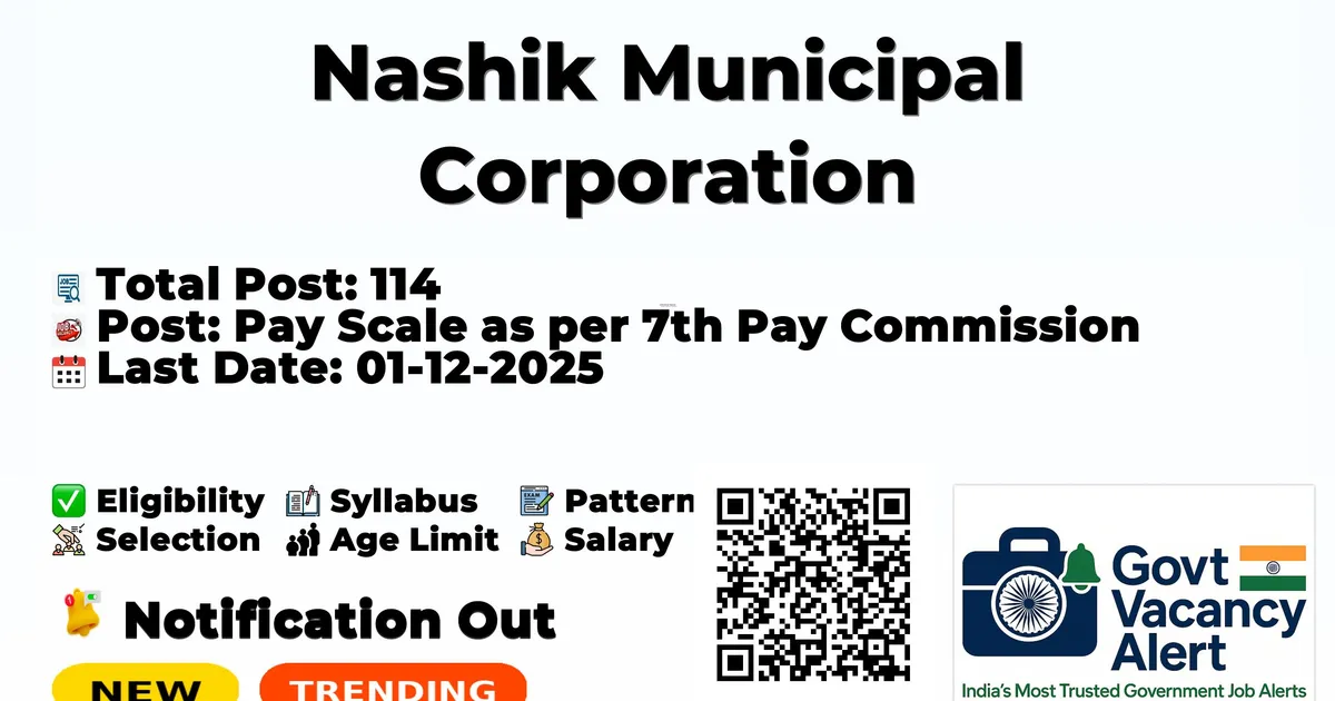 Nashik Municipal Corporation has released an official notification for the recruitment of 114 Assistant Engineer, Junior Engineer and Other Posts. Interested and eligible candidates can apply Online through the official Nashik Municipal Corporation website. The last date to submit the application form is 01-12-2025. In this article, you’ll find the Nashik Municipal Corporation Assistant Engineer, Junior Engineer and Other Posts recruitment details, including eligibility criteria, age limit, salary structure, selection process, application steps, and direct links to the official notification and Online application form.
