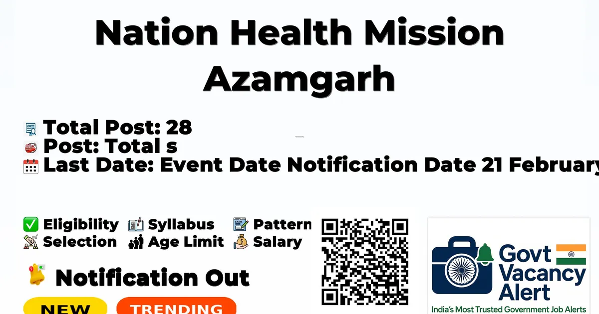 Nation Health Mission Azamgarh (NHM Azamgarh) Recruitment 2026: Nation Health Mission Azamgarh has released the official notification for 28 MBBS Doctor posts, inviting applications from eligible candidates. This recruitment provides an excellent opportunity for candidates seeking stable and well-paid government jobs.
