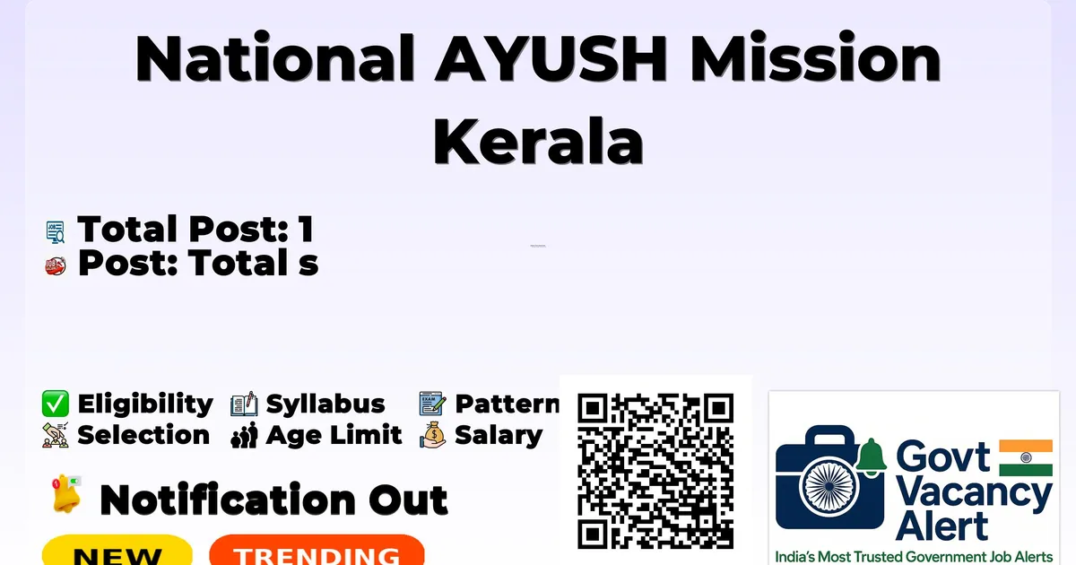 National AYUSH Mission Kerala (NAM Kerala) has released an official notification for Walk-in Interview for 1 Homeo Pharmacist Posts. Eligible candidates can attend the Walk-in Interview on at the NAM Kerala office with original documents and self-attested copies.