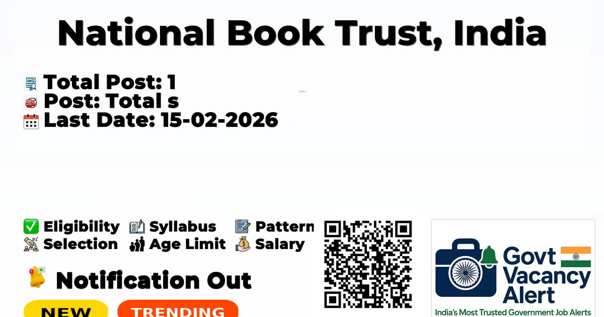 National Book Trust has released an official notification for the recruitment of 01 Legal Assistant Posts. Interested and eligible candidates can apply Offline through the official National Book Trust website. The last date to submit the application form is 15-02-2026. In this article, you’ll find the National Book Trust Legal Assistant Posts recruitment details, including eligibility criteria, age limit, salary structure, selection process, application steps, and direct links to the official notification and Offline application form. Advertisement Company Name National Book Trust, India Post Name Legal Assistant No of Posts 1 Advt No 78/2026/Estt. Salary Rs. 50,000/- Per Month Qualification Graduate with LLB, Diploma in Computer Applications Age Limit Maximum Age: 35 years Notification Date 03-02-2026 Last Date for Apply 15-02-2026 Apply Mode Offline Job Type Contract Official Website www.nbtindia.gov.in Trending Govt Jobs India Post GDS Online Form 2026 RRB 22000 Group D Online form 2026 UPSC CSE Online Form 2026 SBI 2273 CBO Recruitment 2026 Yantra India YIL 3979 Trade Apprentices Online Form 2026 Candidates who are interested in applying for the NBT Recruitment 2026 should first download and carefully read the official notification PDF. The notification contains complete details about vacancy distribution, eligibility criteria, age limit, stipend/salary, selection process, important dates, and application instructions. Reading the official document is important to ensure that you meet all requirements before submitting the application form. Download NBT Legal Assistant Job 2026 Notification PDF Post Name Total Posts Legal Assistant 1 Total 1 Graduate with LLB Diploma in Computer Applications Knowledge of MS Office English and Hindi languages proficiency Three Years experience in relevant field Maximum Age: 35 years Rs. 50,000/- Per Month Event Date Notification Date 03 February 2026 Last Date for submission of applications 15 February 2026 Personal Interview Candidates who wish to apply for NBT Legal Assistant Recruitment 2026 through offline mode should follow the steps below. Read the official notification carefully before applying. Download the application form from the official website: www.nbtindia.gov.in. Fill the application form carefully with correct information. Attach self-attested copies of required documents such as photograph, signature, ID proof, and certificates. Check all details carefully before submission. Send the completed application form to the Deputy Director (A&E), National Book Trust, India, 5, Institutional Area, Phase-II, Vasant Kunj, New Delhi 110070 through Speed Post / Registered Post or as instructed. Ensure the application reaches before the last date: 15 February 2026. Keep a photocopy of the submitted application form for future reference. Official Notification PDF: Click here Official Website: Click here Join Arattai Channel: Click Here Join Telegram Channel: Click Here Join WhatsApp Channel: Click Here Sarkari Result: Click Here Download Mobile App: Click Here